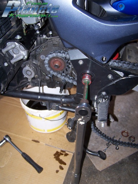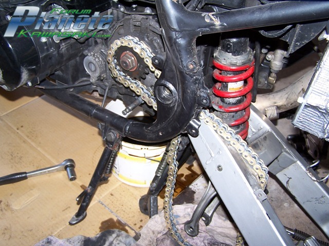 Voila une méthode de changement d'un kit chaîne fermé en démontant le bras oscillant